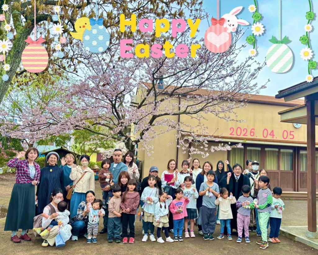 例えばイースターの月の『子どもと大人が一緒に捧げる礼拝』では、園庭で『イースターエッグ探し』が開催され、毎年たくさんの園児や卒園児が参加しています。