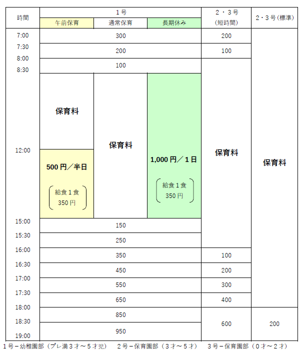 (朝夕延長・午前保育・長期休み)