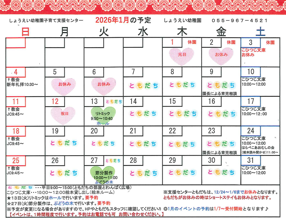 毎月リトミックや製作イベントなども行っていますので詳しくは