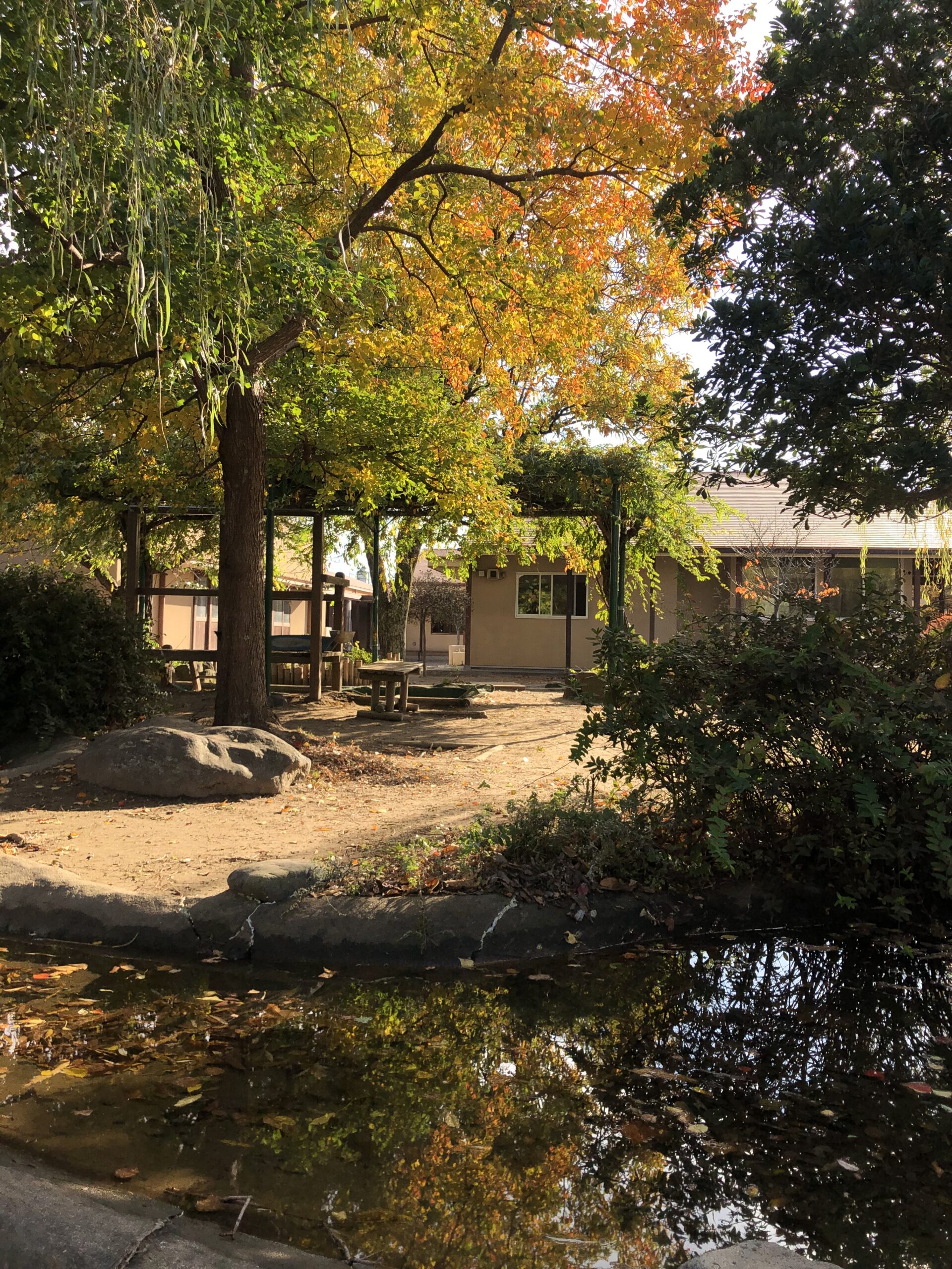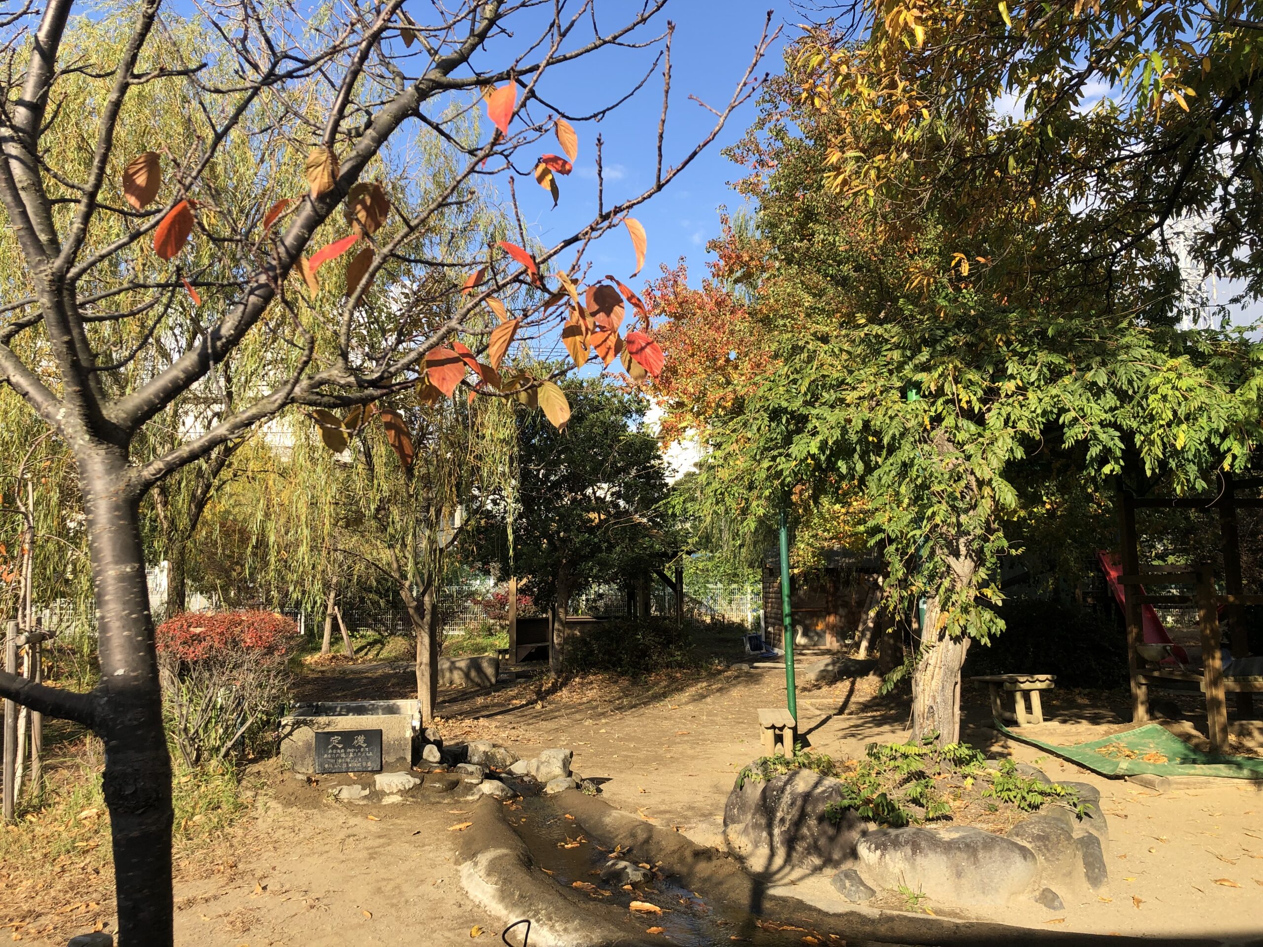 井戸から流れる小川が園庭をぐるっと流れ、夏は水遊びも楽しめます。